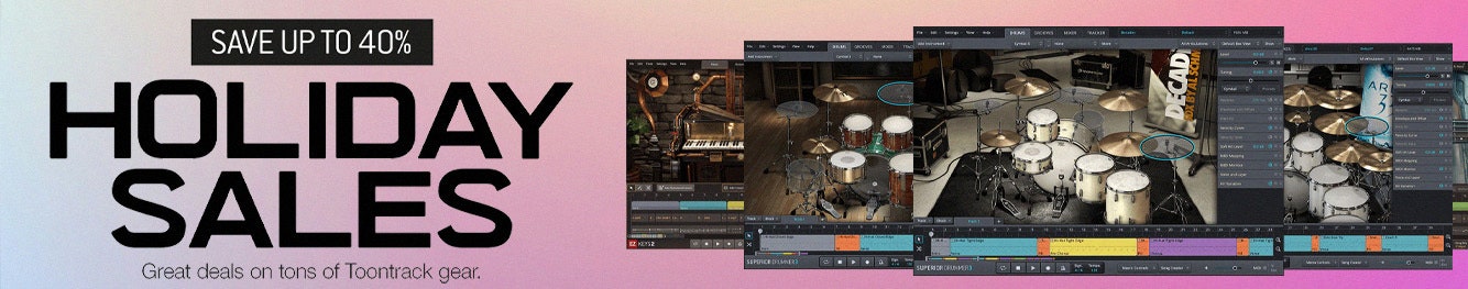 Enten du lager trommer, bass, piano eller komplette arrangementer, er Toontrack det opplagte valget for å løfte musikkproduksjonen din. Ikke gå glipp av muligheten til å spare stort under Holiday Sales!