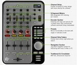 Den er designet i et DJ-format som umiddelbart føles kjent for alle som har stått bak et DJ-setup. SCS-1m har bl a 4 kanalstriper med fadere og EQ-kontroller i tillegg til en følsom crossfader og en enkel cue/monitor-seksjon. Det er også mulig å koble inn en "ordentlig" platespiller eller CD-spiller via en aux-inngang. Like perfekt som selvstendig mikser som i kombinasjon med SCS-1d.
