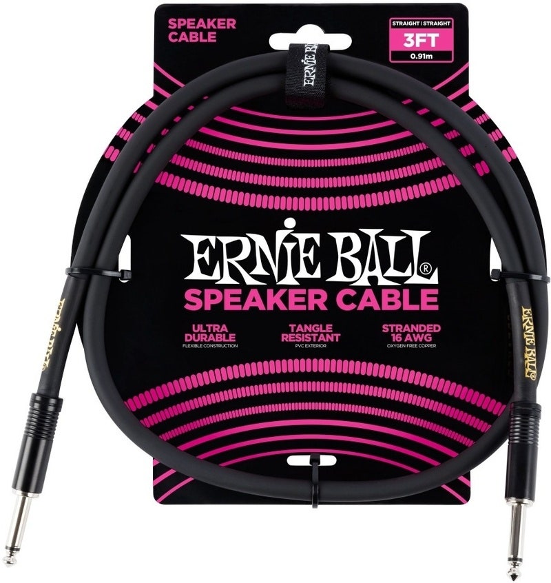 90cm Ernie Ball Speaker Cable - Sort høyttalerkabel med jack-kontakter