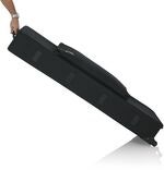 GK-88 SLIM er en lett keyboardveske spesielt utviklet for 88-tangenters keyboarder med smalere dybde. Den indre konstruksjonen med stive EPS-skumkjerner forsterket med en polyetenramme gir pålitelig beskyttelse under transport. Innvendig er vesken kledd med trikot og mykt skum for å beskytte instrumentet mot støt.