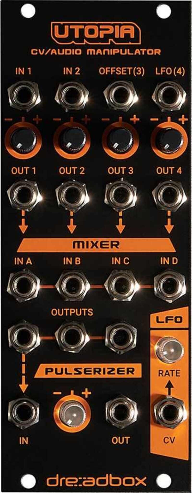 - Voltage Controlled LFO med rekkevidde fra 30 sekunder opp til 440Hz