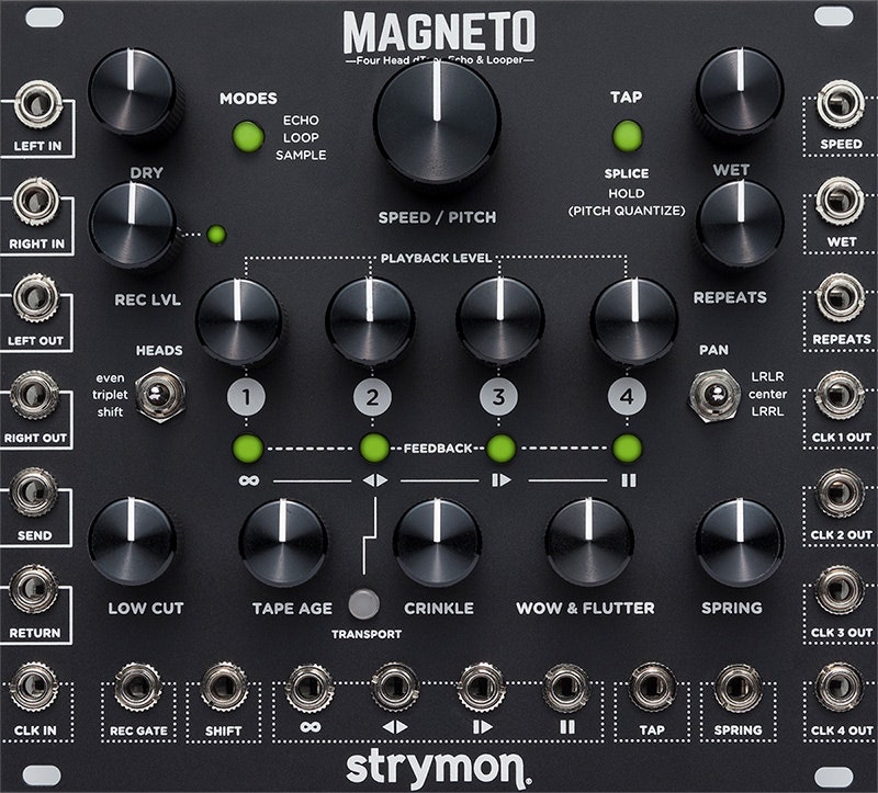 - Magnettoneffekt med fire avspillingshoder og ett innspillingshode