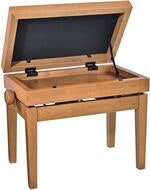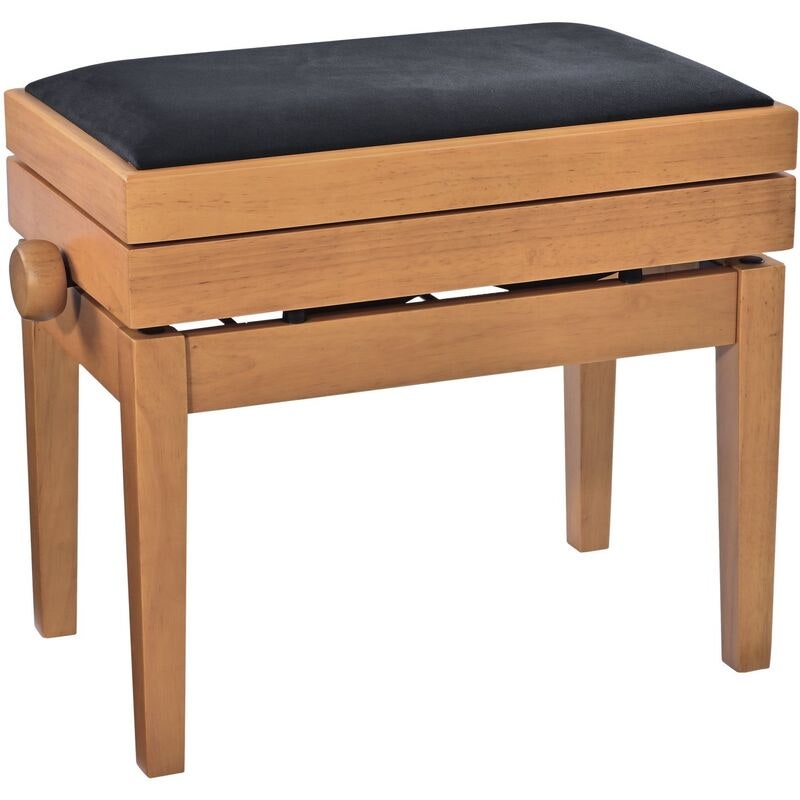Artikkelnummer 1096323Høydejusterbar pianokrakk i massivt tre med oppbevaring, natur matt finish og svart veloursete