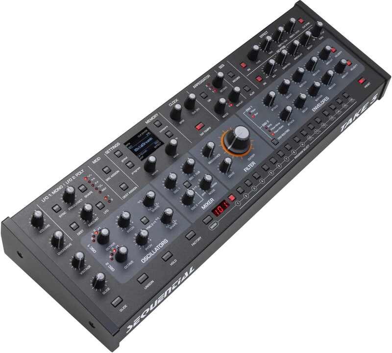 Artikkelnummer 1091878Desktop Polysynt med 5-røster, 2 VCOs, 4-pol resonansfilter, 2 LFOs, 64-stegs polyfonisk sequencer, arpeggiator, digitale effekter,