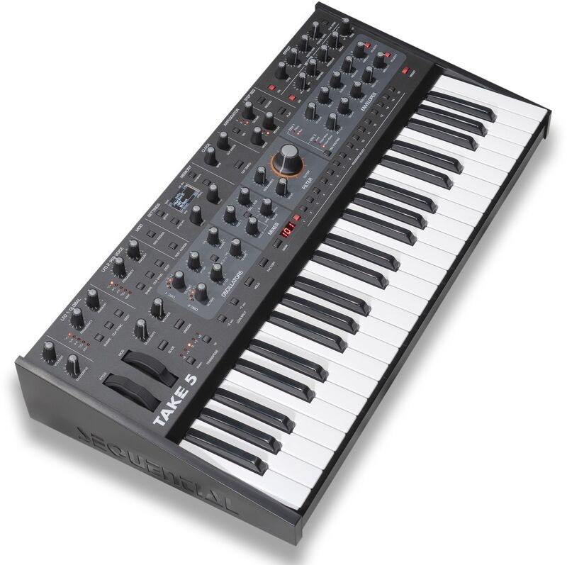 Artikkelnummer 1072525Take 5 er Sequentials mest kompakte, fullverdede VCO/VCF-baserte polysynt med 5 stemmer, 44 fullt store tangenter, 2 VCO-er, 4-pol resonansfilter, 2 LFO-er, 64-trinns polyfon sekvensiell sequencer, arpeggiator, digitale effekter