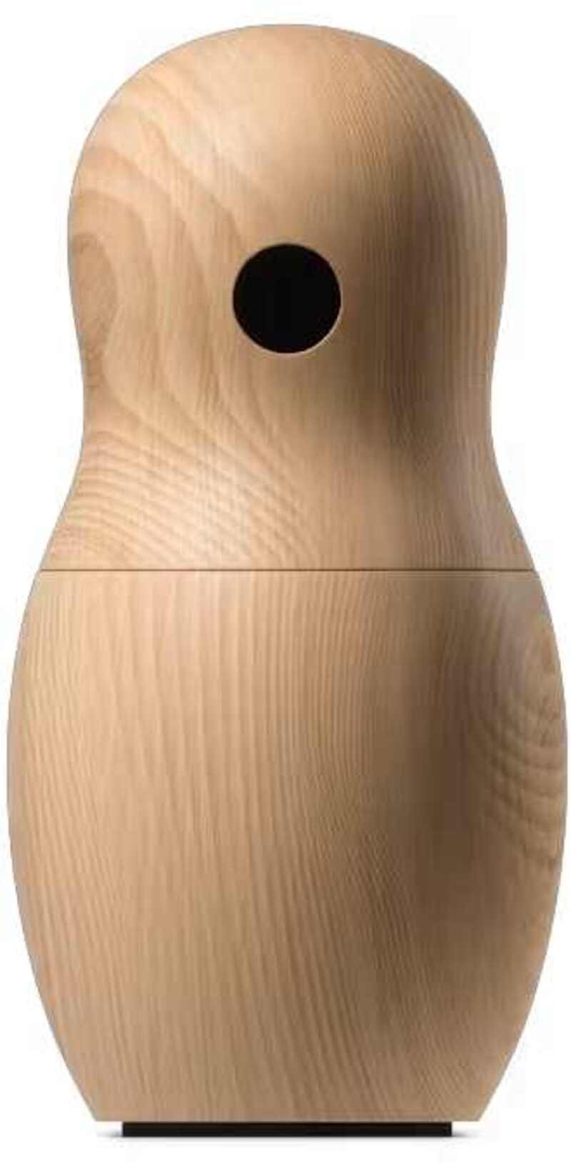møt olga, den russiske kontralt - en av 8 sangende tredukker som utgjør Teenage Engineering-koret. laget av massiv bjørk med en innebygd høyttaler, kan hver dukke utføre forhåndsprogrammert musikk eller styres via midi-keyboard, synge solo eller sammen med opptil 15 av sine korsangere gjennom BLE-signal.