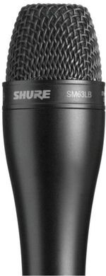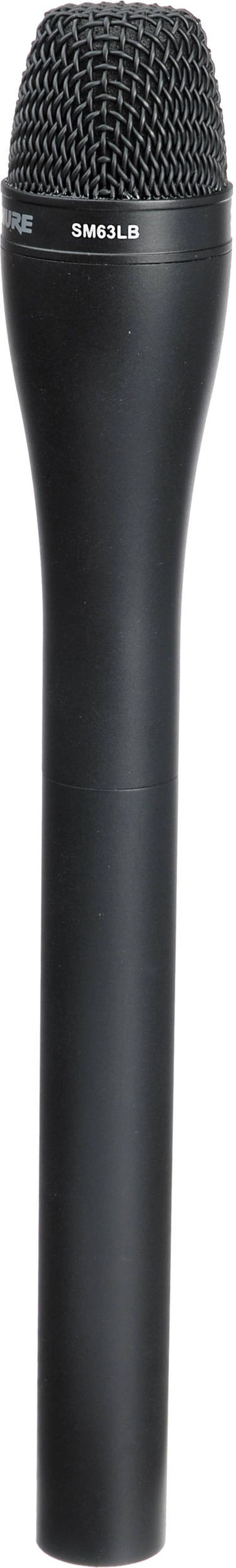Shure SM63LB er en dynamisk mikrofon utviklet for profesjonell talebruk, intervjuer samt radio- og TV-produksjon. Det lange, ergonomiske mikrofonhuset gjør den enkel å håndtere i felten, samtidig som den robuste konstruksjonen tåler krevende forhold.