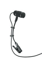 Supplied with Audio-Technica's versatile UniMount® clip and new violin mount, the low-profile ATM350 is an exceptional cardioid condenser microphone designed to clip to brass, reeds, piano, snare, toms, and violin. The microphone offers a crisp, clear, well-balanced response, even at high SPLs. It features an integral 80 Hz hi-pass filter and is also equipped with a new in-line power module. Its cardioid polar pattern reduces pickup of sounds from the side and rear for effective protection against feedback.