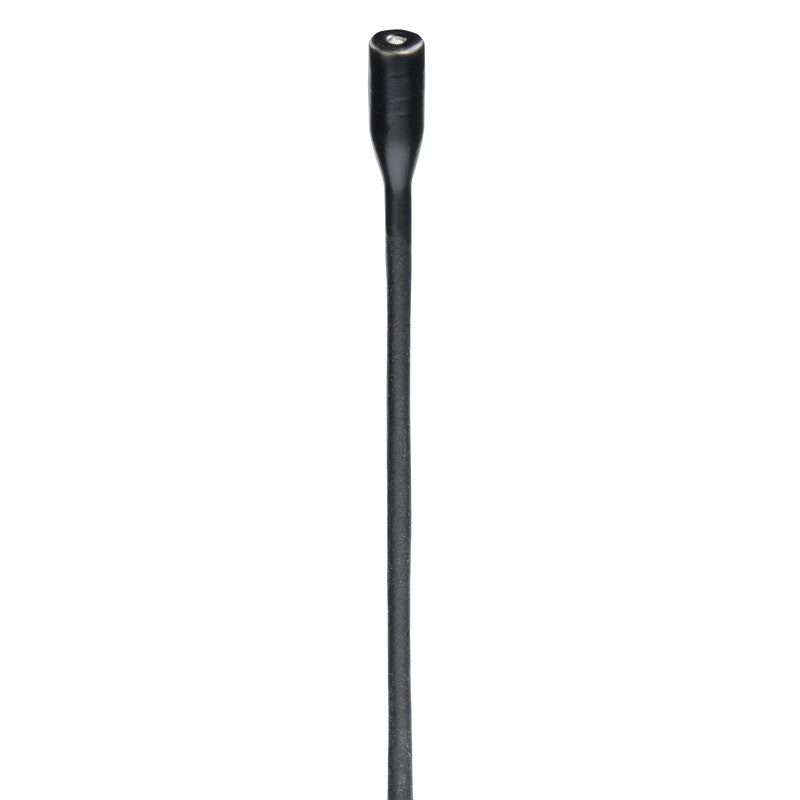 Ekstremt liten rundtopptakende myggmikrofon av electretmodell for trådløse systemer. Ekstremt bestandig mot fukt og sminke ved plassering i håret eller mot huden. Krever fantommating 9-48V. Vindhette, klemme og tre grilltopper (0 dB, +4 dB, +8 dB) følger med.