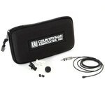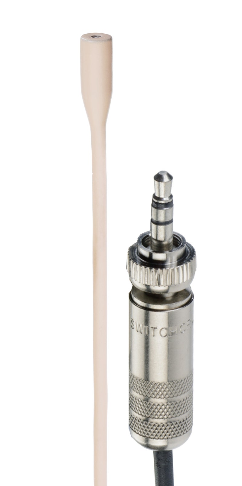 Ekstremt liten rundtopptakende myggmikrofon av electretmodell for trådløse systemer. Ekstremt bestandig mot fukt og sminke ved plassering i håret eller mot huden. Krever fantommating 9-48V. Vindhette, klemme og tre grilltopper (0 dB, +4 dB, +8 dB) følger med.
