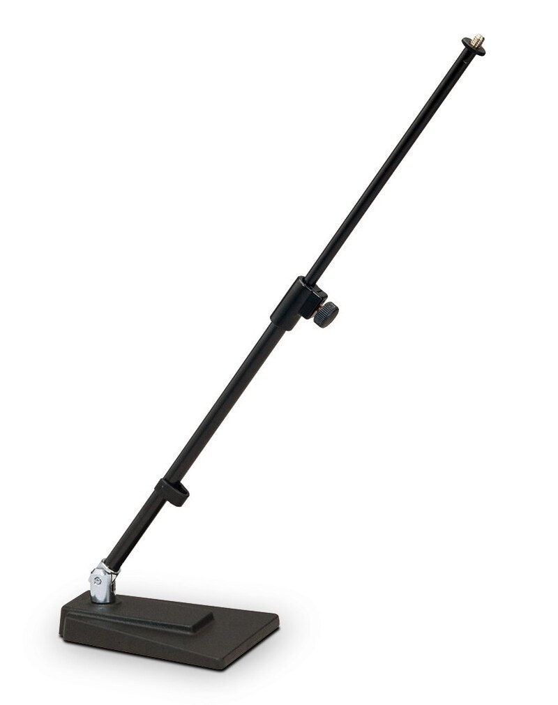2-delt mikrofonstativ med rektangulær fot og justerbar vinkel. Svart.