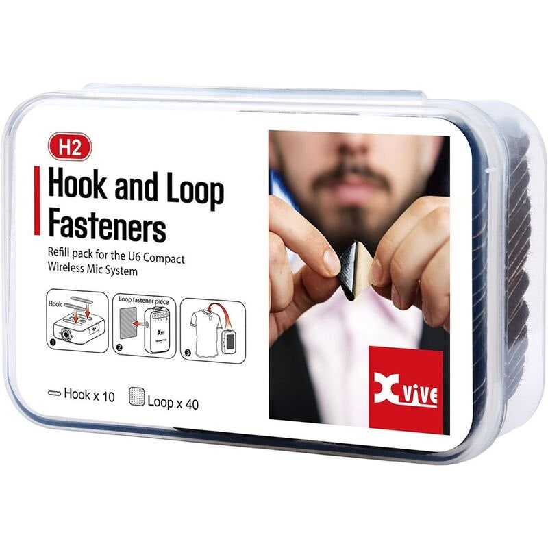 Disse kardborrefestene er utviklet for bruk sammen med Xvive U6-senderen og gjør det mulig å feste enheten direkte på klær eller andre overflater nær brukerens stemme.