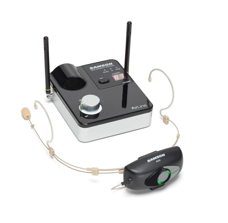 The Samson AirLine 99m AH9 Headset system is a unique wireless microphone solution designed to meet the specific demands of singers, presenters, educators, interviewers and other active performers. Along with a low-profile DE10x headset microphone, this frequency-agile UHF wireless system combines the AH9 micro transmitter and AR99m micro receiver for a highly-portable, rechargeable setup that offers high-definition sound completely free of cables and beltpacks.