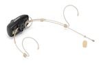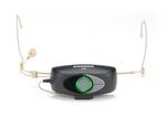 - Micro transmitter mounted directly to a double ear headset (no beltpack or cable required)
