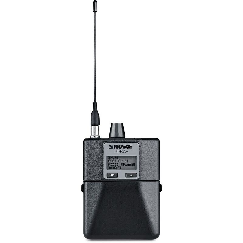 Shure's P9RA + er en kompakt stereomottaker for bruk med PSM®900 Wireless Personal Monitor System. Med en hybrid analog / digital arkitektur tilbyr P9RA + Bodypack Receiver uovertruffen lydkvalitet med mer headroom, bedre stereoseparasjon og pålitelig RF-ytelse for økt RF signalstyrke. Alle P9RA + -mottakere er kompatible med P9T- og P10T-sendere.