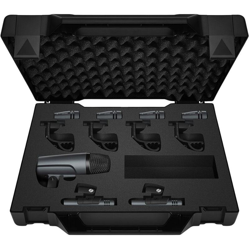 Sennheiser e600 Drum Case er et komplett mikrofonsett for trommesett utviklet for både livebruk og studioinnspilling. Settet inneholder en nøye sammensatt kombinasjon av mikrofoner for basstromme, skarptromme, toms og overhead.
