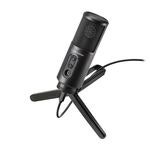 Ideell for podcasting, innspillinger i hjemmestudio, feltopptak og stemmeskuespill, kobles ATR2500x-USB til datamaskinen eller en annen enhet, og fungerer sømløst med din favorittinnspillingsprogramvare. Dette stort diaphragm, side-veis kardioid kondensatormikrofon reduserer opptaks av uønsket lyd fra sidene og baksiden, og er utstyrt med en høykvalitets analog-til-digital-omformer (24-bit, opptil 192 kHz) for eksepsjonell lydkvalitet. Mikrofonen har også en hodetelefonutgang med volumkontroller for direkte lydovervåkning. ATR2500x-USB leveres med to 2 m (6.6’) kabler (USB-C til USB-C, USB-C til USB-A), et solid bordstativ med tripodfot, og en vinkelbar gjengefeste som sikkert festes til medfølgende tripod eller til en konvensjonell mikrofonstativ.