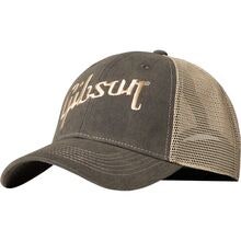 Truckercaps, brun canvas, justerbar voksenstørrelse, pustende mesh, klassisk Gibson-design
