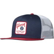 Truckercaps, hvit/blå/rød, Gibson Guitar Co-logo, justerbar voksenstørrelse, pustende mesh, retro...