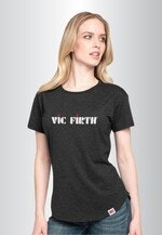 Superlekker grå T-skjorte for kvinner med Vic Firth Logo foran og bak.
