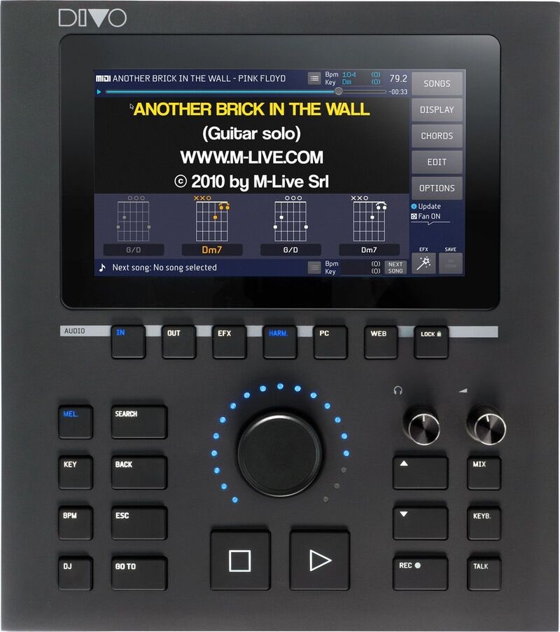 Artikkelnummer 1081400DIVO er en høyprestasjons arbeidsstasjon for soloartister eller fåmannsband. Backtrack-spiller, Mixer, Harmonizer og Digital Recorder