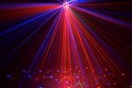 Enheten inneholder en derby-effekt (5 x 3W RGBWA) med seks innebygde gobos for mønsterprojeksjon, røde og grønne laserstråler samt åtte RGBW-stroboskop. Kombinasjonen gir mulighet for bred lysfordeling, fargeskiftninger og intense rytmestyrte effekter.