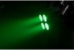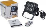 Artikkelnummer 1091343LED-armatur, 4x6W RGBW, DMX in/ut, auto/ljudstyrda lägen, dubbla fästen, 130x130x130 mm, 0,5 kg, IP20