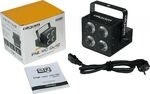 Artikkelnummer 1091338LED-armatur, RGBW 4x10W LED, DMX inn/ut, auto/lydstyrt, dobbel montering, 125x125x110 mm, 0,9 kg, IP20