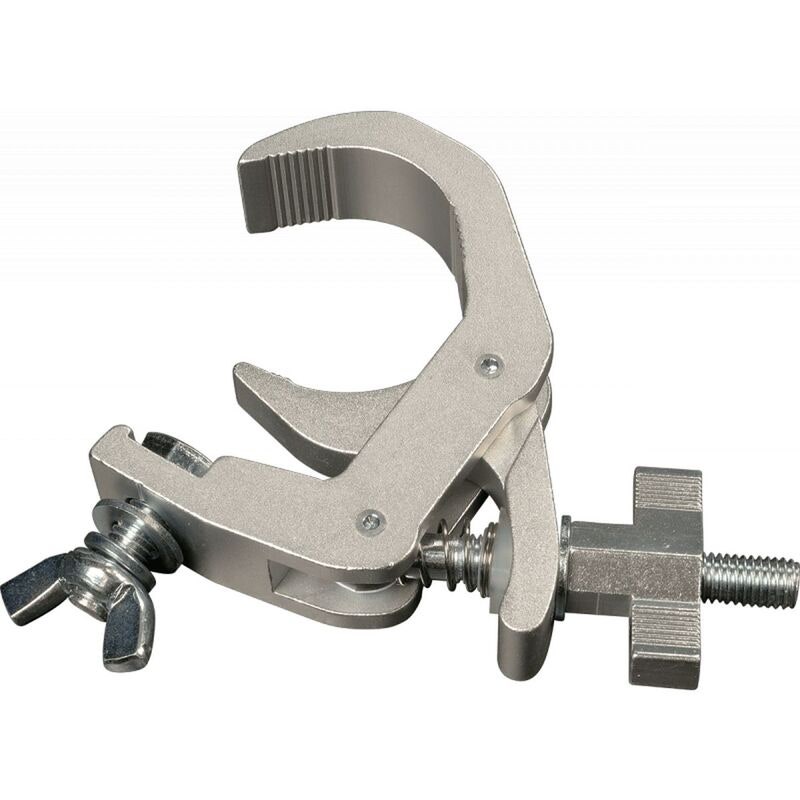 Klemmen er egnet for både midlertidig og permanent montasje, og brukes for å sikre belysning og annen sceneutstyr i ulike riggsystemer. Produktet er TÜV-sertifisert og oppfyller krav for sikker og pålitelig bruk i profesjonelle miljøer.