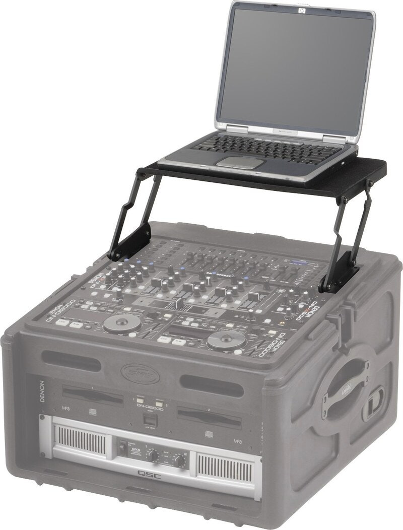 Hylle til f. eks. bærbare datamaskiner. Monteres på rackutstyr som har skrå topp med minst 8HE rackåpning. Passer til f. eks. SKB-82DJ, SKB-84DJ og SKB -106DJ.