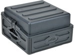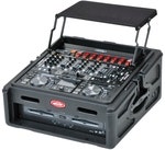 10HE for toppmontering samt 6HE på fronten for sluttrinn og effekter etc. SKB R102 har harde lokk og sider samt lett adkomst til kabler via luker på kortsidene. Det er plass for at tilbehørshyllen AV-8 kan være montert også med lokket igjen. (AV-8 selges separat)