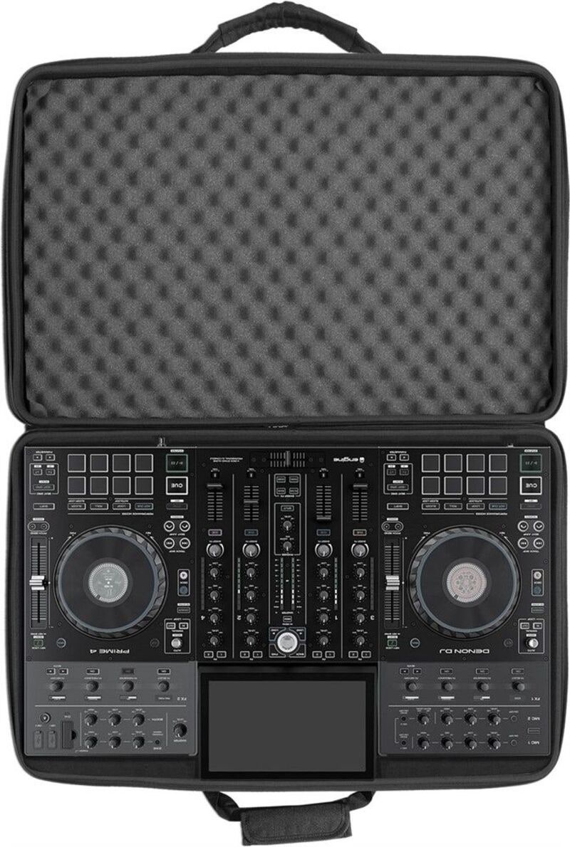 Artikkelnummer 1065974Veske som passer Denon DJ Prime 4, durashock gjutet EVA-skum, exteriør av lamineret nylon, interiør av fleece, glidelås med godt grep