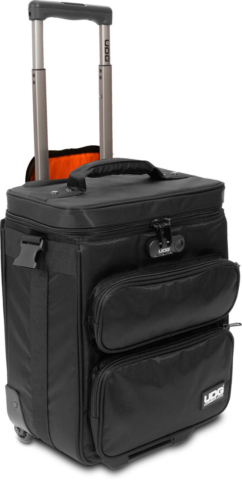 UDG Ultimate DIGI Trolley To Go er konstruert med en solid ramme av koffert for rullebord med diagonale hjul og en to-trinns trolleyhåndtak, noe som gjør den til den ideelle vesken for de lange spasene på flyplassen. Designet for hyppige DJ-reisende, med rom til ditt verdifulle digitale DJ-utstyr, har den en stor sentralrom, en avtakbar skillevegg med en organizerseksjon for lydgrensesnitt og hodetelefoner. En polstret plass til bærbar PC som rymmer en 15