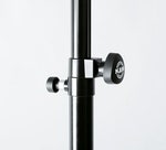 Høyttalerstativ i aluminium med fjærende sikkerhetssplint. Sort.