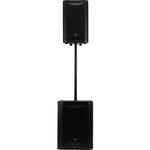 Subwooferen har innebygd DSP med presets for rask systemintegrasjon. Justerbart lowpass-filter (60–150 Hz) gir en jevn overgang til top-høyttalere. To XLR/TRS combo-innganger med direkte utganger gir fleksible tilkoblinger, og innebygd Bluetooth med TWS Bridge Mode muliggjør trådløs stereoparkobling med en andre enhet. Fargeskjerm gir intuitiv kontroll og presis måling.