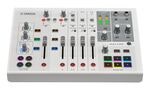 En 8-kanals live streaming-mikser med to phantom power-innganger for kondensatormikrofoner, en integrert USB-lydgrensesnitt, voiceskifter og sampler.