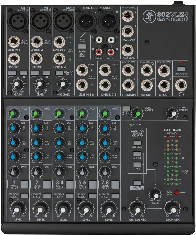 Artikkelnummer 1040447Mackie 802VLZ4 8-ch mixer w/3 onyx Preamps