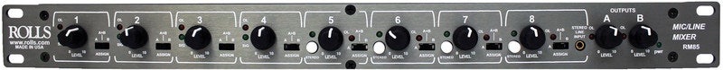 RM85 er en 8-kanals to-soner mixer. Kanaler 1-4 kan håndtere XLR mikrofon- eller XLR line-nivå inn- innganger. Kanaler 5-8 er 1/4"-innganger. Alle 8 kanaler kan sendes til de to XLR-utgangene i tre konfigurasjoner; A, B eller begge A+B. De separate A- og B-utgangene er XLR, og hvilken som helst kan velges som Line- eller Mikrofonnivå utgang. Kanal 8 har også en stereoinngang på 3.5mm (1/8") på forsiden av RM85.