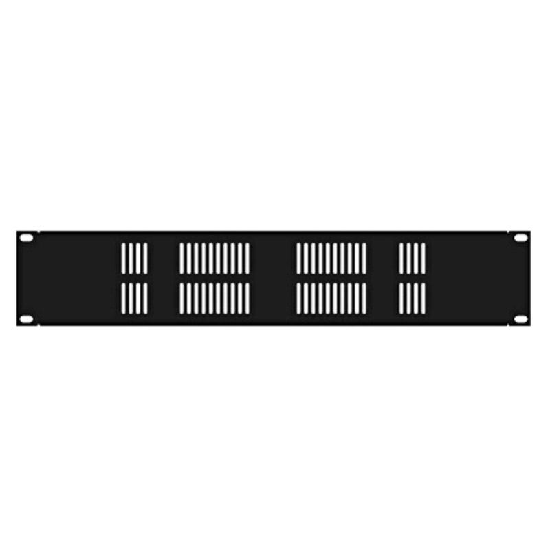 Ventilerte takkplate i svartlakkert plate til 19" rack som dekker 2 høydeenheter.