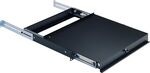 Utdragbar rackhylle med ekstra rackskinner for stabil montering i bakkant eller i siden av rack. 1HE.