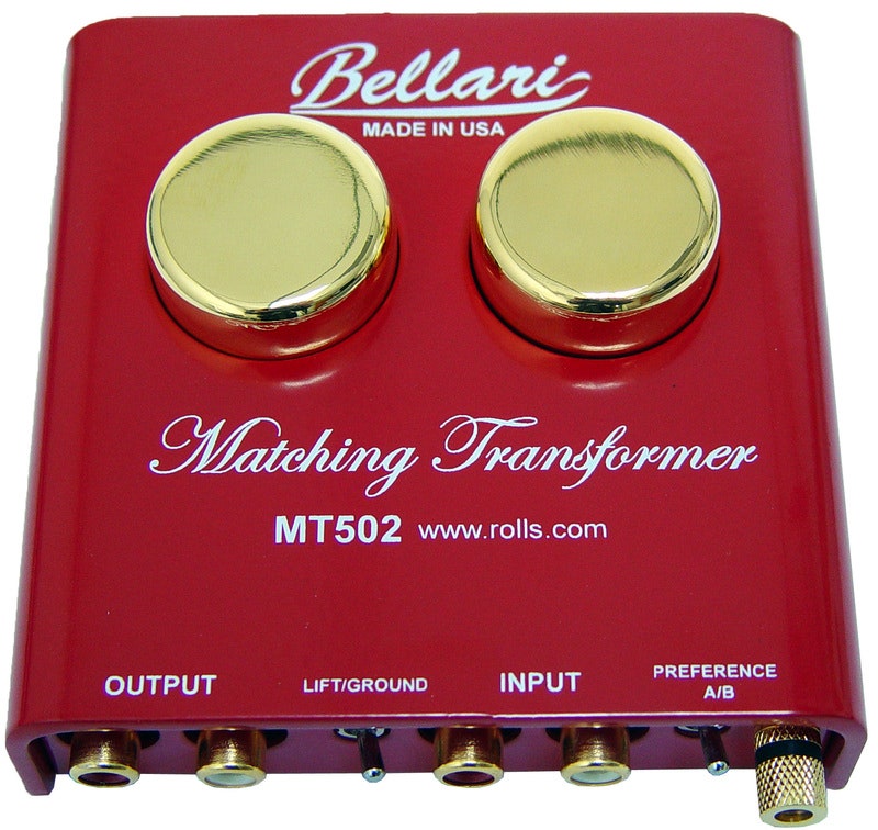 Bellari MT502 er en stereo, moving coil step up transformer som hever det lave nivået for en moving coil-karturi til et moving magnet-nivå. Dette gjør at din moving coil-kartusj kan brukes med din phono preamp.