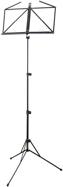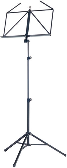 Stabilt, sammenleggbar notestander med fullt justerbar notplatta. Svart.