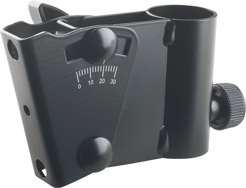 Høyttalerfeste med skruefeste for 35 mm stativrør. Vinklingsbart ledd 0-30 grader.