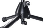 Profesjonelt stativ med kablede XLR-tilkoblinger og ekstra svanehals. Dette førsteklasses stativet lar mikrofonen kobles direkte til stativet uten mikrofonklemme eller ekstern kabel. Det er en vinklet 3-pins XLR-kontakt i den nedre enden av røret for kabeltilkobling. Digitale lydkabler av høy kvalitet er innebygd i både mikrofonstativet og svanehalsen. Disse trekkes inn, loddes og testes for hånd på KLOTZ AIS-fabrikken i Tyskland. Det pulverlakkerte stativet har en høyde på 1165 mm og kan utvides til 1520 mm med den medfølgende svanehalsen. De robuste, korte helmetallføttene med støtlydabsorberende fotkapper sikrer en utmerket plassbesparende plassering og brettes enkelt sammen for transport.