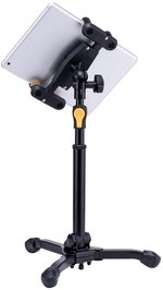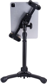 Gulvstativ med holder for nettbrett eller smarttelefon.