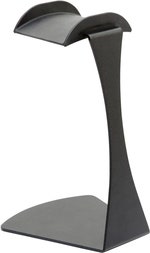 Artikkelnummer 1055764Bordsställ för hörlurar, svart, robust, tillverket i metall.