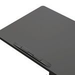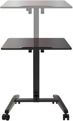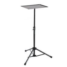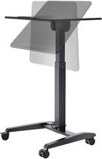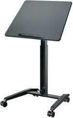 Flexible, ergonomic, and mobile - this high-quality laptop desk has it all. The continuous height adjustment reaches heights from 770 to 1,130 mm and is conveniently operated by foot pedal. The large MDF shelf, measuring 695 x 520 mm, can be adjusted from horizontal to 90°. Four large lockable castors ensure practical mobility and a secure standing position. This all-rounder is ideal for use in the studio, at home, or on and off stage.