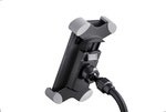 Med denne universalholderen er smarttelefonen din alltid innen rekkevidde. Holderen passer for alle flate enheter med en bredde på 55 til 85 mm. Operasjonen er rask og enkel. En hurtigutløserknapp på baksiden med låsemekanisme låser opp de gummierte klemmene og smarttelefonen kan enkelt fjernes. Takket være det fleksible kuleleddet kan holderen vippes opp og ned og roteres 360°. Den fleksible holdearmen med en lengde på 100 mm gir ekstra individuell posisjonering. En attraktiv metallbase med sklisikre gummiputer sikrer utmerket stabilitet.