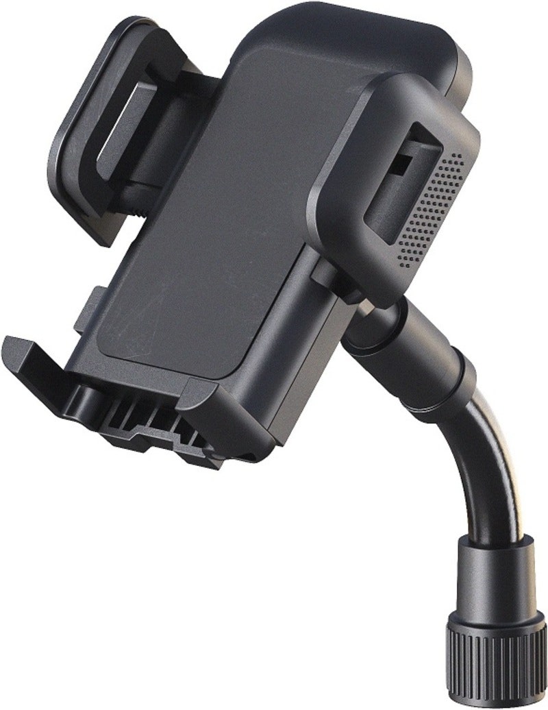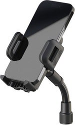 Med denne universalholderen er smarttelefonen din alltid innen rekkevidde. Holderen passer for alle flate enheter med en bredde på 45 til 90 mm. Operasjonen er rask og enkel. Sett inn smarttelefon - trykk klemkjevene sammen - ferdig. Enheten frigjøres igjen ved å trykke på en knapp. Klemkjevene med integrerte gummiputer garanterer et sikkert grep. De bevegelige støttene kan også foldes helt bort om nødvendig. Takket være kuleleddet kan holderen vippes opp og ned og roteres 360°. Den fleksible støttearmen med 3/8" mikrofontrådforbindelse gjør smarttelefonholderen allsidig.