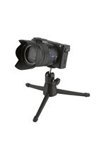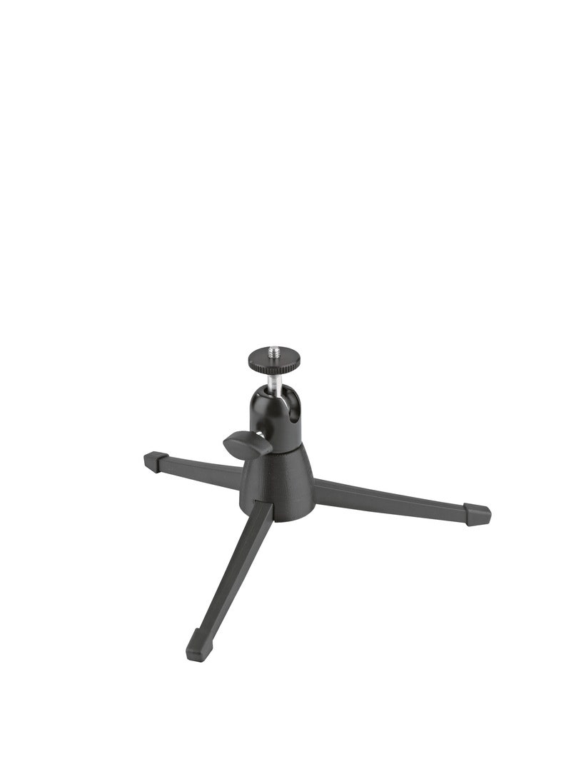 Brukervennlig kamerastativ for montering av kompaktkameraer, actionkameraer, webkameraer, miniprojektorer og mobile opptakere med 1/4" koblingsgjenger. Kuleledd gjør at det monterte utstyret kan roteres 360° og fikseres i enhver posisjon. Tiltvinkelen er trinnløst justerbar opp til 90° og lastekapasiteten er designet for utstyr opp til 1 kg. Sammenfoldet blir føttene et håndtak, som også muliggjør mobil, håndholdt bruk.